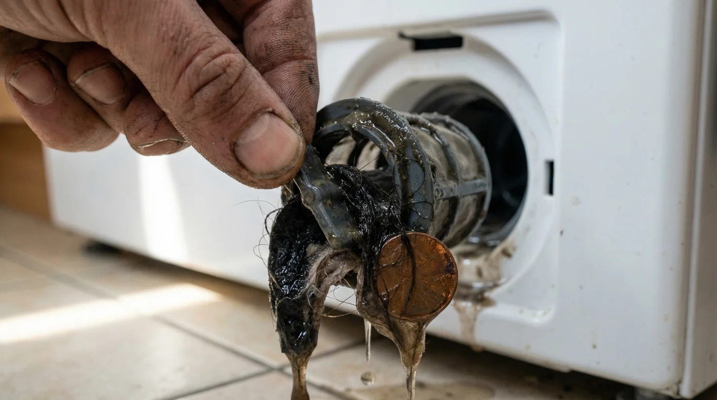 Çocuklu evlerde bu filtre, yıkanmadan önce ceplerde unutulanların sessiz mezarlığıdır. Bozuk paralar, toka parçaları, şeker ambalajları ve kopuk düğmeler doğrudan bu süzgeçte birikir. Su tahliye pervanesinin dönmesini fiziksel olarak engelleyen bu sert cisimler, motorun yanmasındaki bir numaralı faildir. Eğer haftada dört kereden fazla makine çalıştırıyorsan, o kapağı her kırk beş günde bir açmalısın.